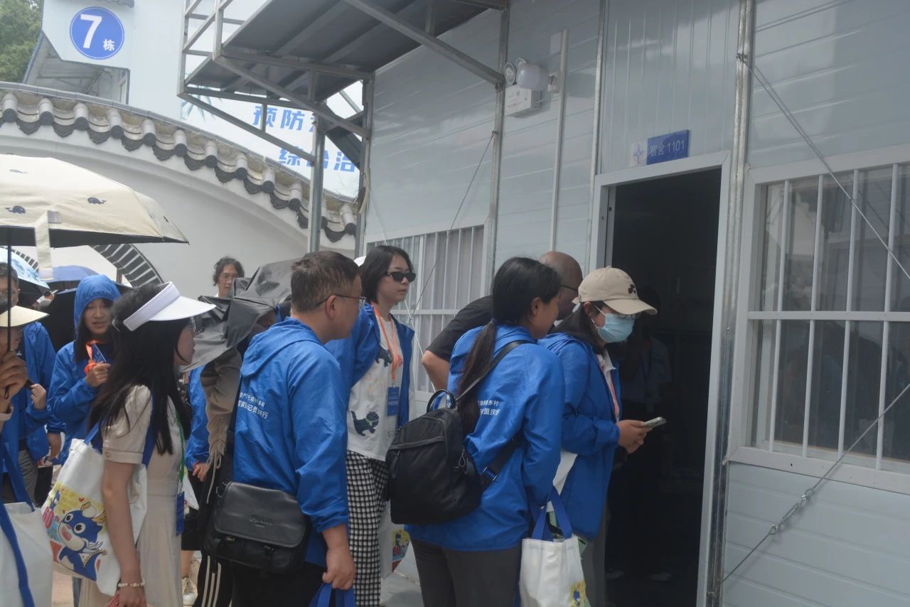 活动中,融媒体记者一同走进鹿角隧道项目工人驻地,被幸福小镇中的“徽派建筑”式工人宿舍吸引,驻足停留。在项目讲解员的带领下,记者们详细参观了幸福小镇的办公区及生活区,看到项目为工友们配备的餐厅、洗衣房、烘干房、洗漱间、理发室、医疗室等,覆盖至作业人员生活需要的方方面面,纷纷感叹,小镇里处处充满生活气息。